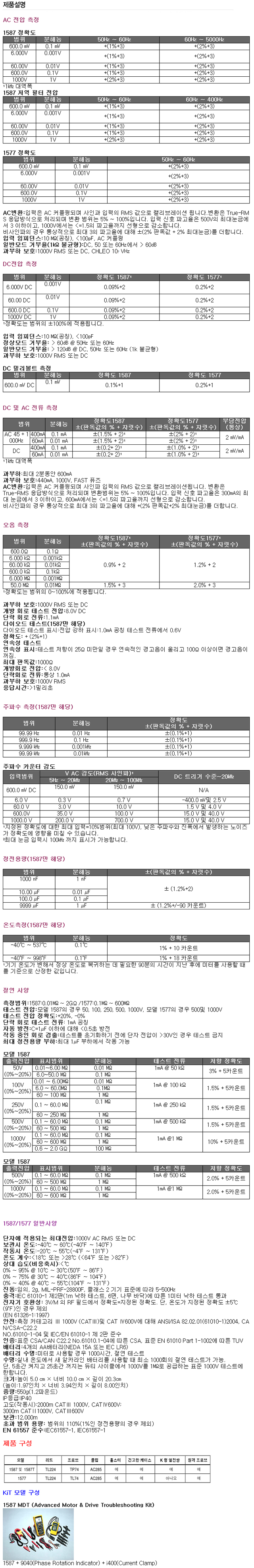 절연저항+멀티미터 FLUKE 1587 FC , 1577
