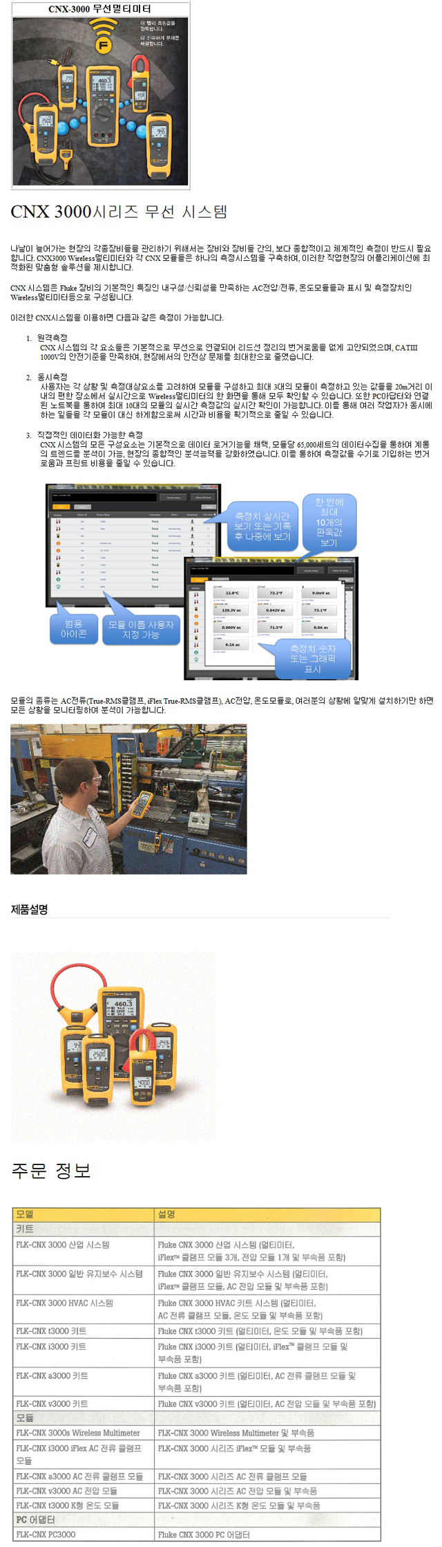 무선 시스템 기능 FLUKE CNX 3000