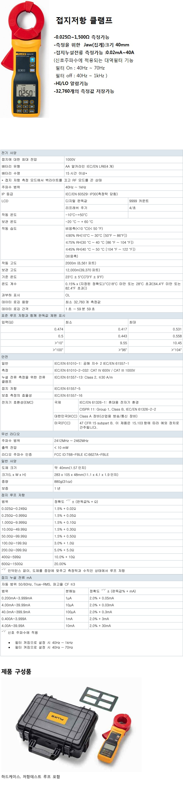 접지 누설전류,접지저항 FLUKE 1630-2 FC