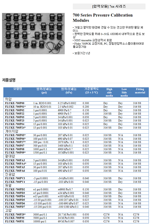 압력모듈 FLUKE [Module] 7xx 시리즈