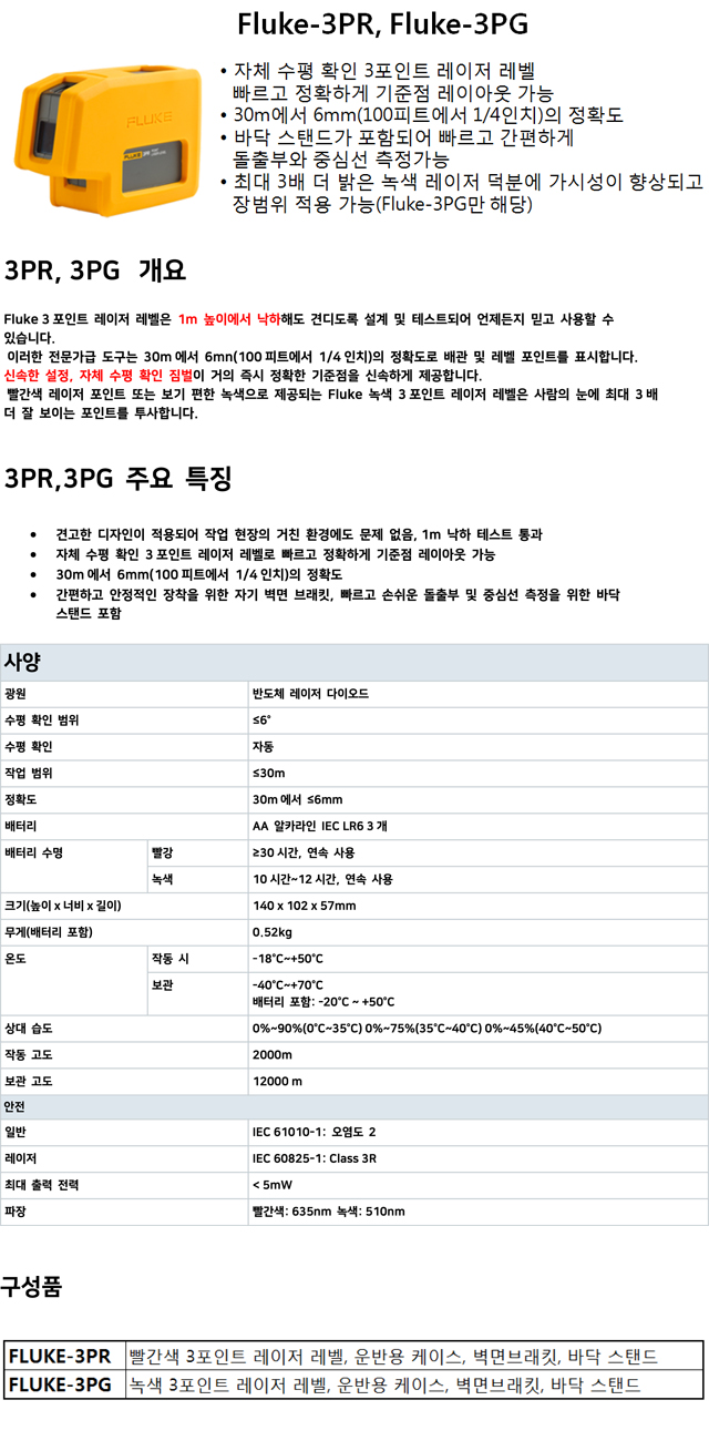 레이저 레벨기 3Point FLUKE 3PR, 3PG