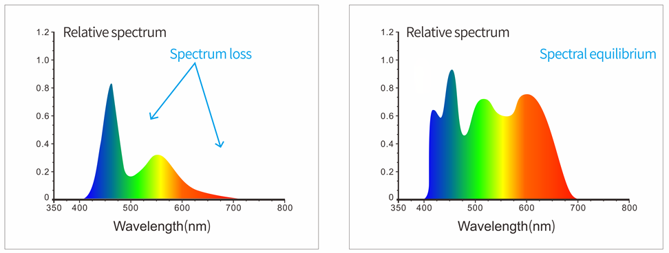 400~700nm의 전 파장 대역에서 균형 잡힌 LED 광원은 가시광선 영역에서 충분한 스펙트럼 분포를 보장하고, 특정 파장 대역에서 백색 LED의 스펙트럼 손실을 방지합니다. 또한 형광 물질을 쉽게 측정할 수 있어 측정 속도와 정확도를 보장합니다.