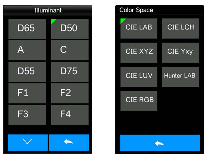 | 색상 차이 공식 | ΔE*ab,ΔE*uv,ΔE*94,ΔE*cmc(2:1),ΔE*cmc(1:1),ΔE*00, DINΔE99,ΔE(Hunter) |