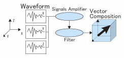 3 방향에 검출기를 배치, 벡터 합성 한 가속도 값을 기록하여 어떤 방향의 움직임도